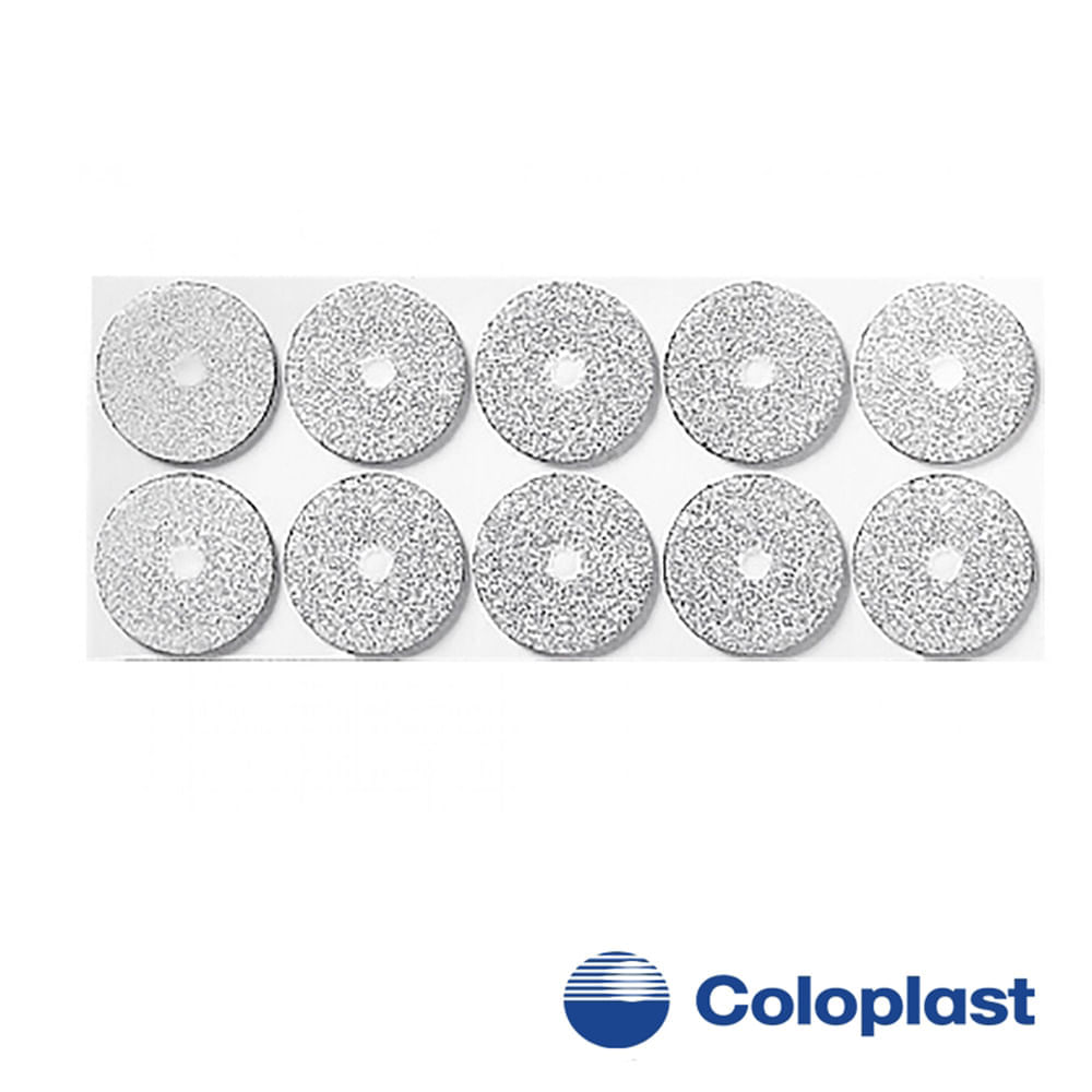 A maioria dos equipamentos para ostomia da Coloplast vêm com um filtro de carvão integrado que controla os gases. Filtrodor da Coloplast é um filtro de carvão que adere ao seu equipamento de ostomia oferecendo maior proteção contra os odores de seu estoma. O odor é neutralizado quando os gases passam através do filtro de carvão. Para maior proteção contra odores Fácil de usar – o filtro é adesivo e se prende ao equipamento de estomia facilmente. As perfurações são feitas com o alfinete especial fornecido. Minimiza o abaulamento – a saída de gás automática regula a pressão na bolsa coletora. Fluxo de saída ajustável – a capacidade do filtro pode ser aumentada fazendo-se mais perfurações entre a bolsa coletora e o filtro