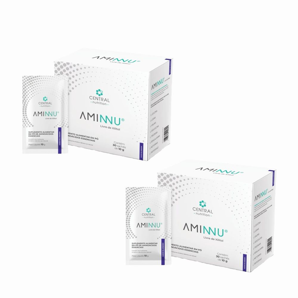 2x Aminnu Sem Xilitol Blueberry-30 Sachês- Central Nutrition Blueberry