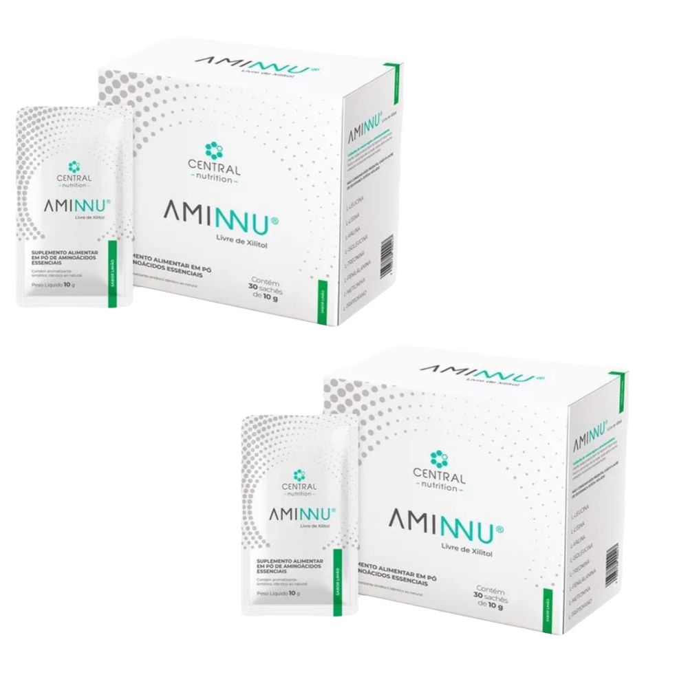 2x Aminnu Sem Xilitol Limão- 30 Sachês- Central Nutrition limao