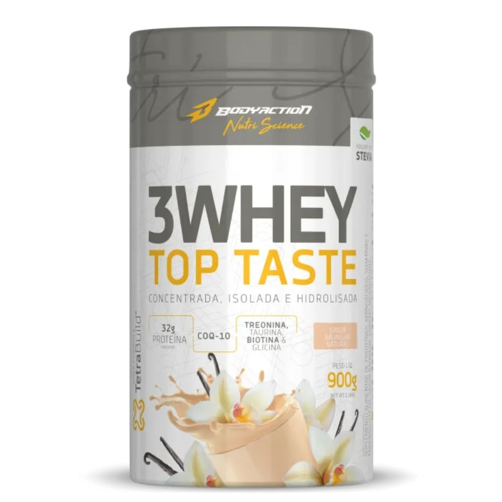 3 Whey Protein Top Taste + BCAA 900g Sabor Baunilha Body Action