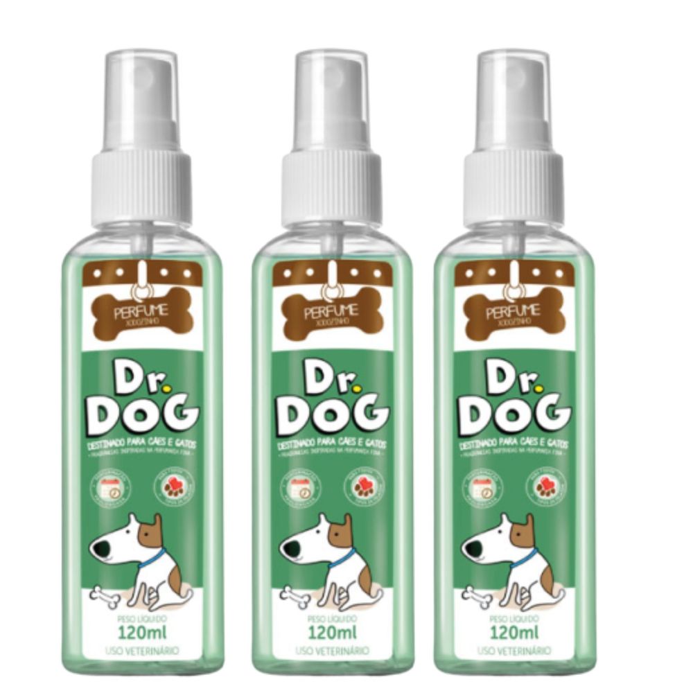 3 x Perfume Loção Colônia Pet Shop Banho e Tosa Fragrância Cachorro e Gato Amadeirado 120ml Dr. Dog Carinho Bom Alta fix