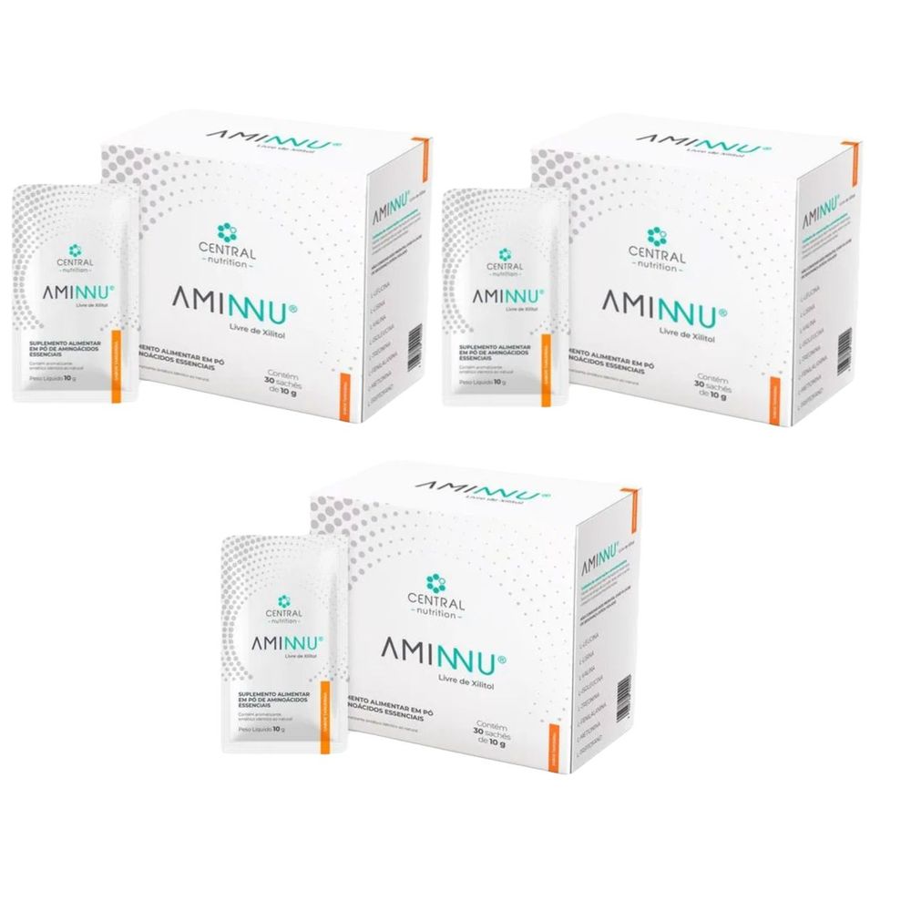 3x Aminnu Sem Xilitol-30 Sachês- Central Nutrition-Tangerina Tangerina