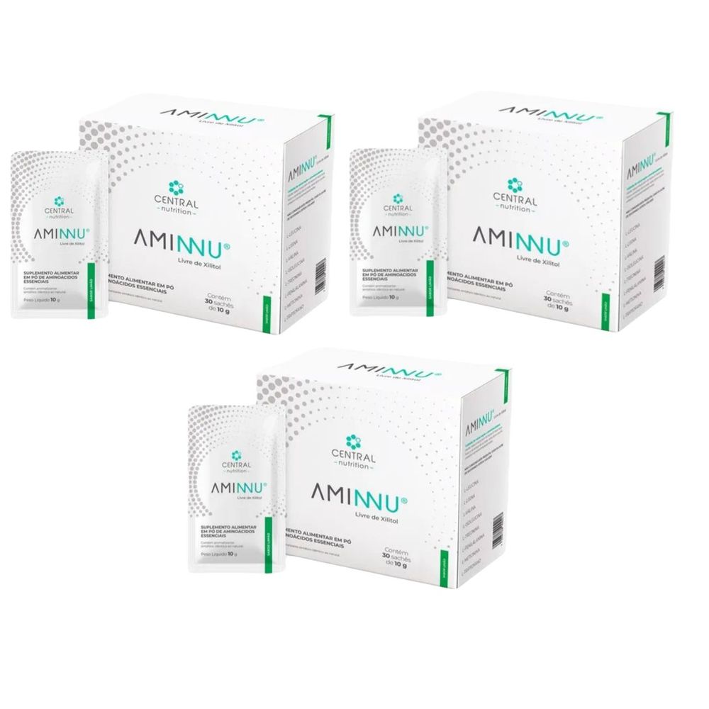 3x Aminnu Sem Xilitol Limão- 30 Sachês- Central Nutrition limao