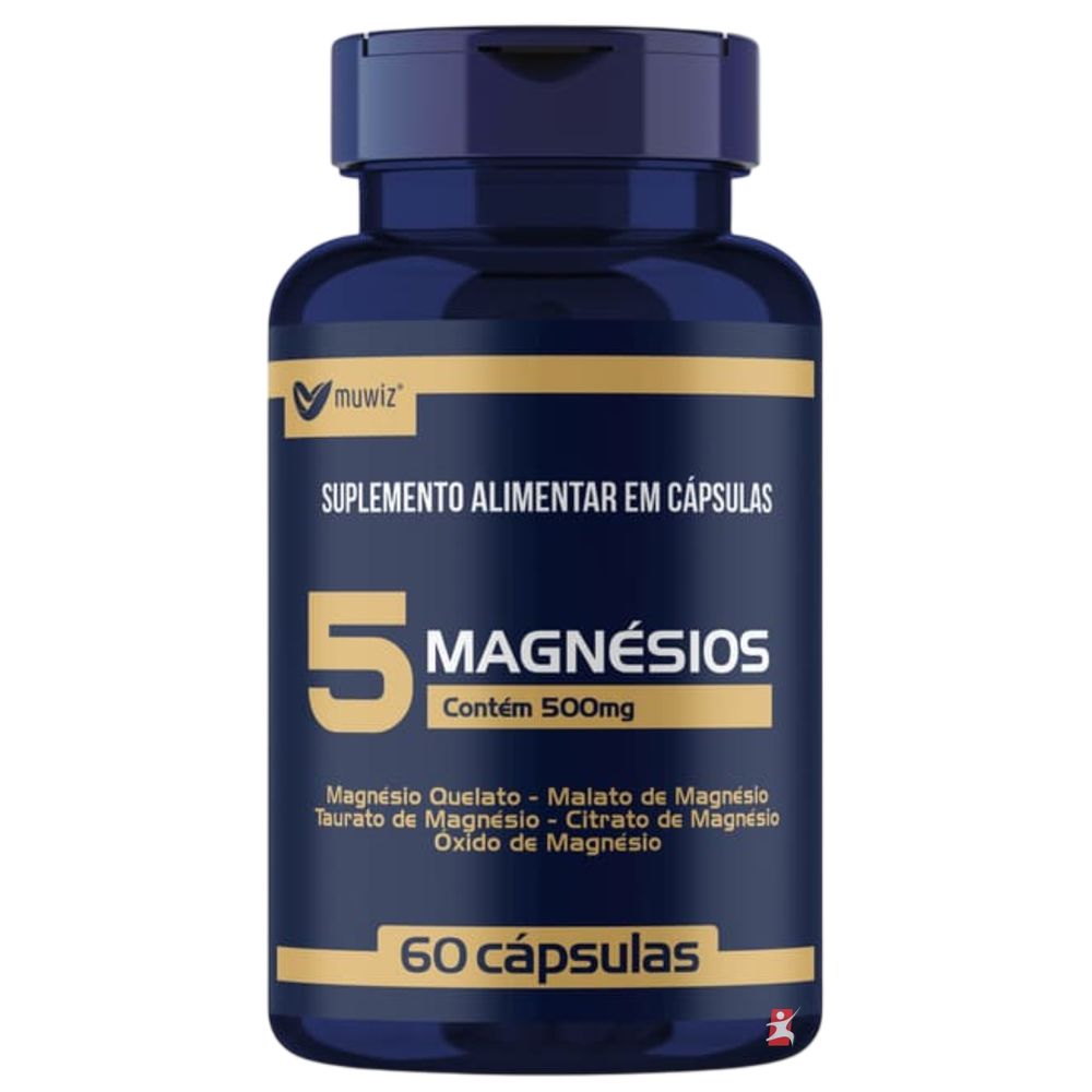 5 MAGNESIOS - QUELATO + MALATO + TAURATO + CITRATO + ÓXIDO 60 CAPSULAS - MUWIZ