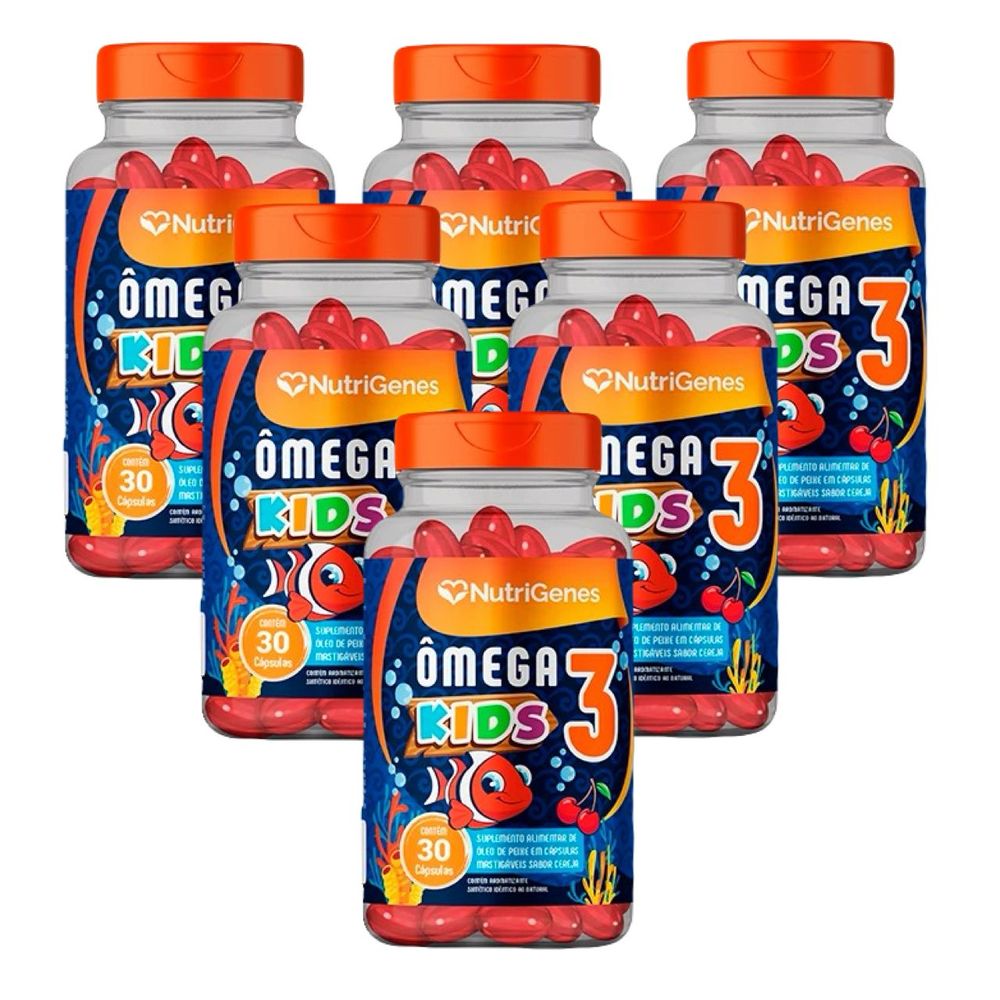 6x Ômega 3 Kids - 30 Caps. Mastigáveis - Nutrigenes Sem Sabor