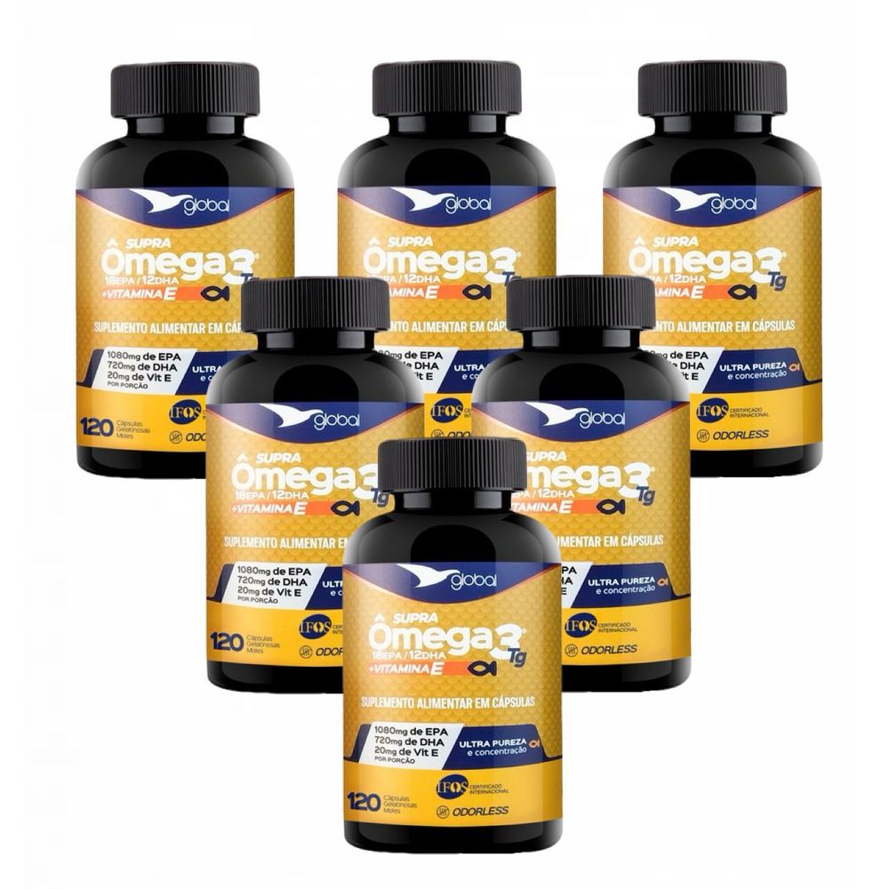 6x Supra Ômega 3 T.G- 1080mg EPA- 720mg DHA- Vit.E-120 Caps