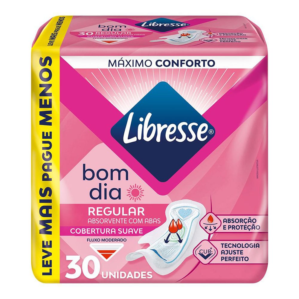 Absorvente Libresse Bom Dia Regular com Abas Suave 30 Unidades