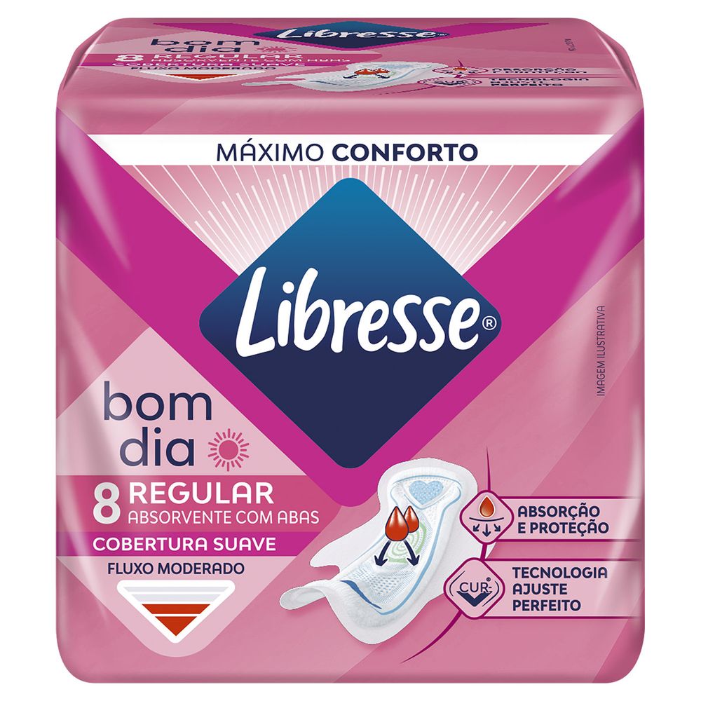 Absorvente Libresse Bom Dia Regular com Abas Suave 8 Unidades