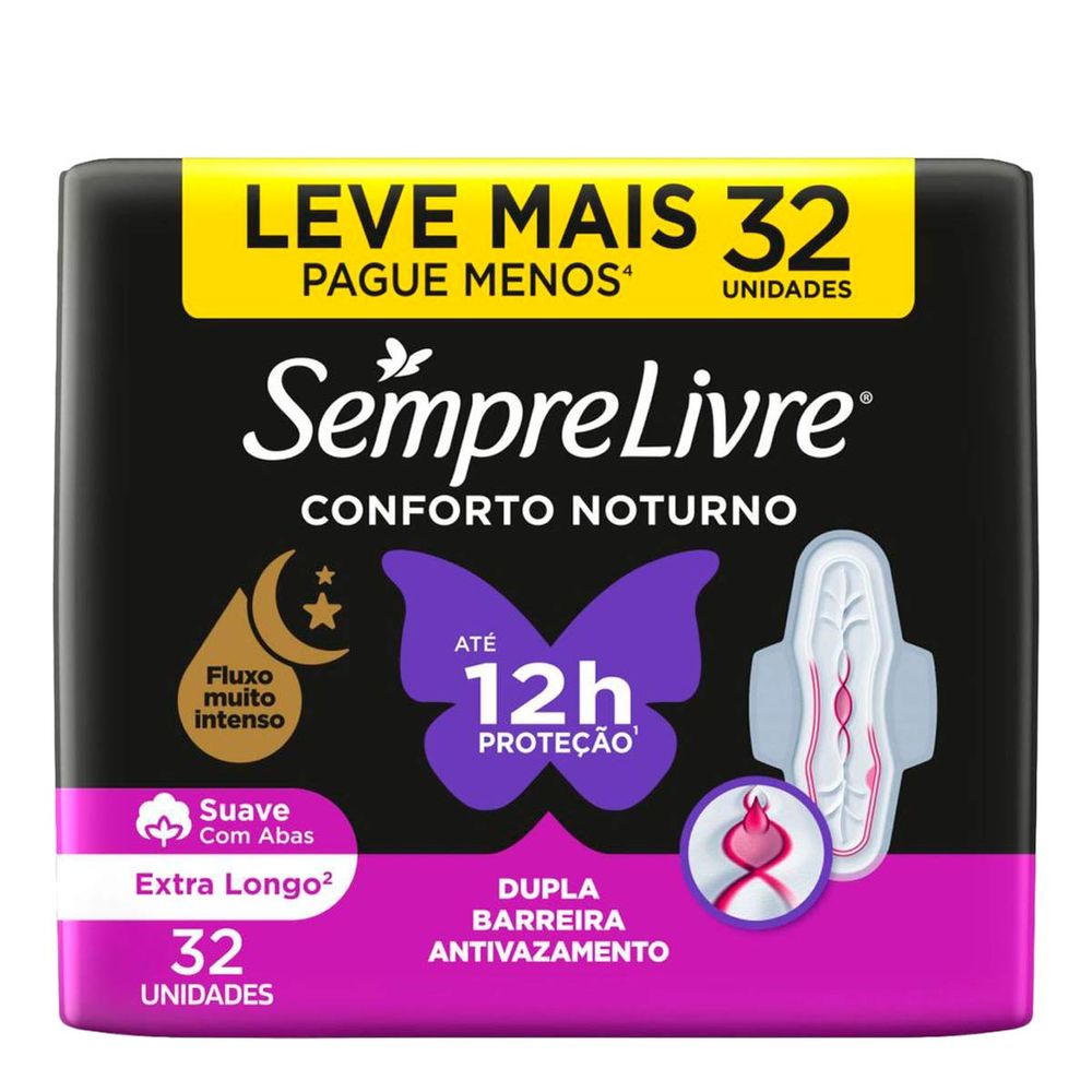 Absorvente Externo Sempre Livre Adapt Plus Noite e Dia Cobertura Suave Com Abas 32 Unidades