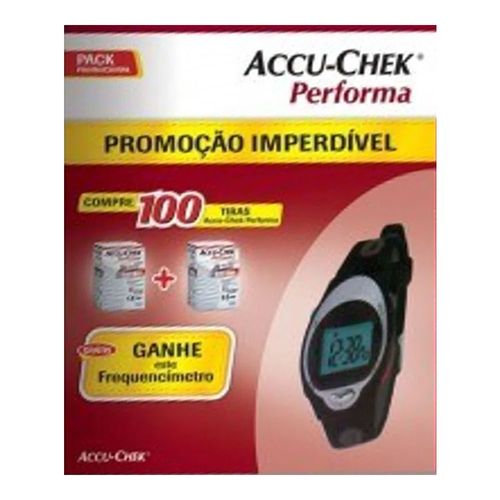 Accu-Chek Performa Roche 2 X 50 Tiras e Grátis Frequencímetro, é um kit que pode ser usado no antebraço, braço, coxa e panturrilha, para verificação dos níveis de glicose no sangue. Com uma gota de sangue, o resultado aparece no monitor depois de 5 segundos.