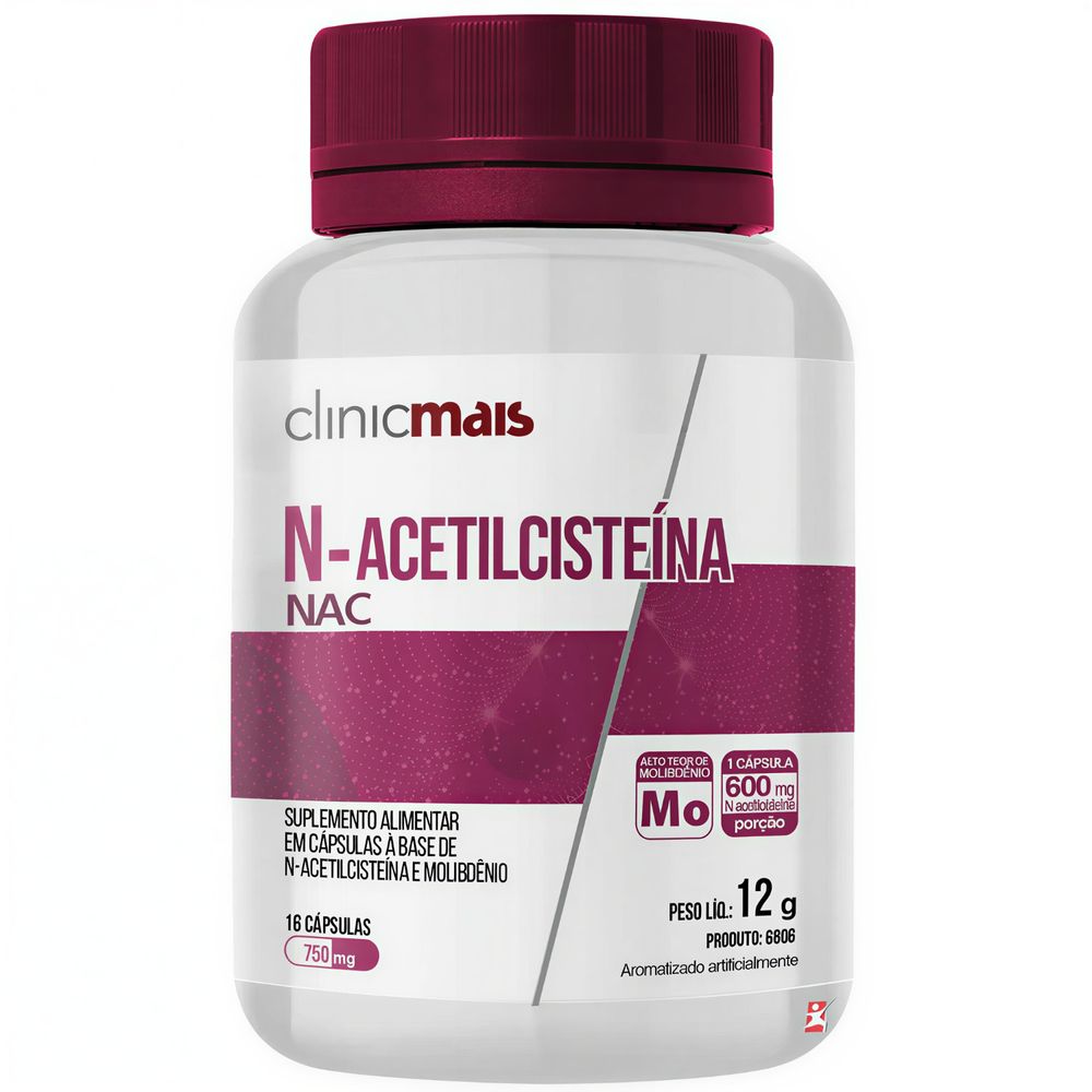 ACETILCISTEINA NAC 600MG + MOLIBDÊNIO 30 CAPSULAS - CLINICMAIS DESCRIÇÃOA Acetilcisteína (NAC) ClinicMais é um suplemento alimentar em cápsulas formulado com N-acetil-L-cisteína e molibdênio, desenvolvido para complementar a ingestão desses nutrientes na alimentação diária. Cada cápsula fornece 600 mg de L-cisteína, um aminoácido sulfurado, além de molibdênio, mineral que auxilia no metabolismo dos aminoácidos sulfurados. Com formulação prática e cápsulas de fácil consumo, o NAC ClinicMais é indicado para adultos e adolescentes acima de 19 anos, conforme recomendação de uso. O produto não contém glúten e pode ser utilizado como parte de uma rotina alimentar equilibrada. BENEFÍCIOS- Rende 30 doses/porções;- Apenas 1 cápsula ao dia;- Auxilia no metabolismo dos aminoácidos sulfurados;- Fonte de L-cisteína;- Contém molibdênio;- Suplemento alimentar em cápsulas;- Não contém glúten. RECOMENDAÇÕES DE USOConsumir 01 cápsula ao dia, ou conforme orientação de profissional de saúde. TABELA NUTRICIONAL - COMPOSIÇÃO - RECOMENDAÇÕES & CUIDADOSAnexo nas imagens do anúncio.