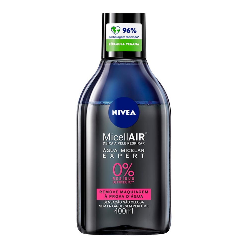 Água Micelar Bifásica Nivea Micellair Expert 400ml é perfeito para quem deseja mais praticidade para a skincare. Conta com fórmula enriquecida por extrato de chá preto e micelas que removem impurezas sem deixar resíduos, incluindo maquiagem a prova d’água.