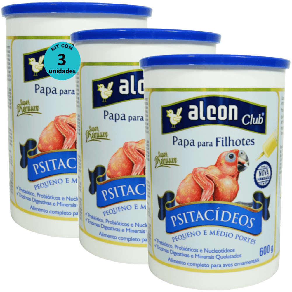 Kit 3 Alcon Club Papa Para Filhotes Psitacídeos Super Premium 600g