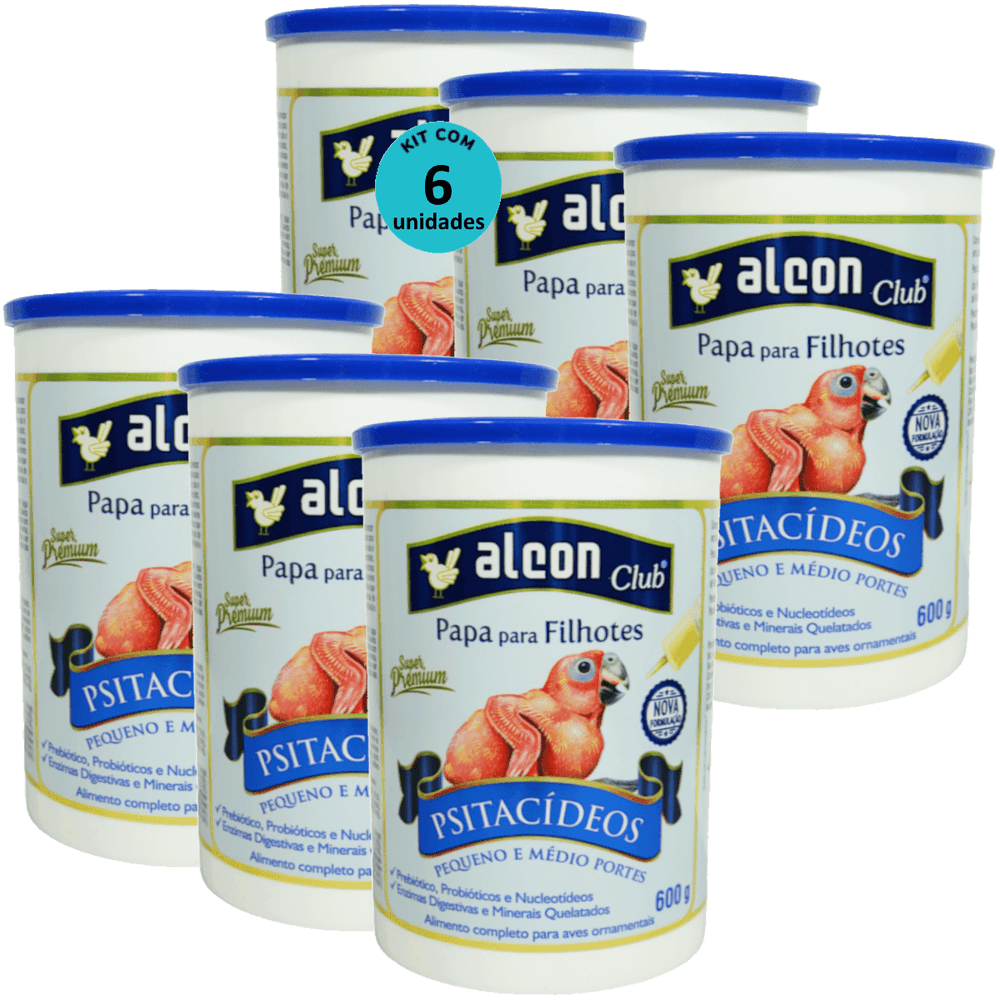 Kit 6 Alcon Club Papa Para Filhotes Psitacídeos Super Premium 600g