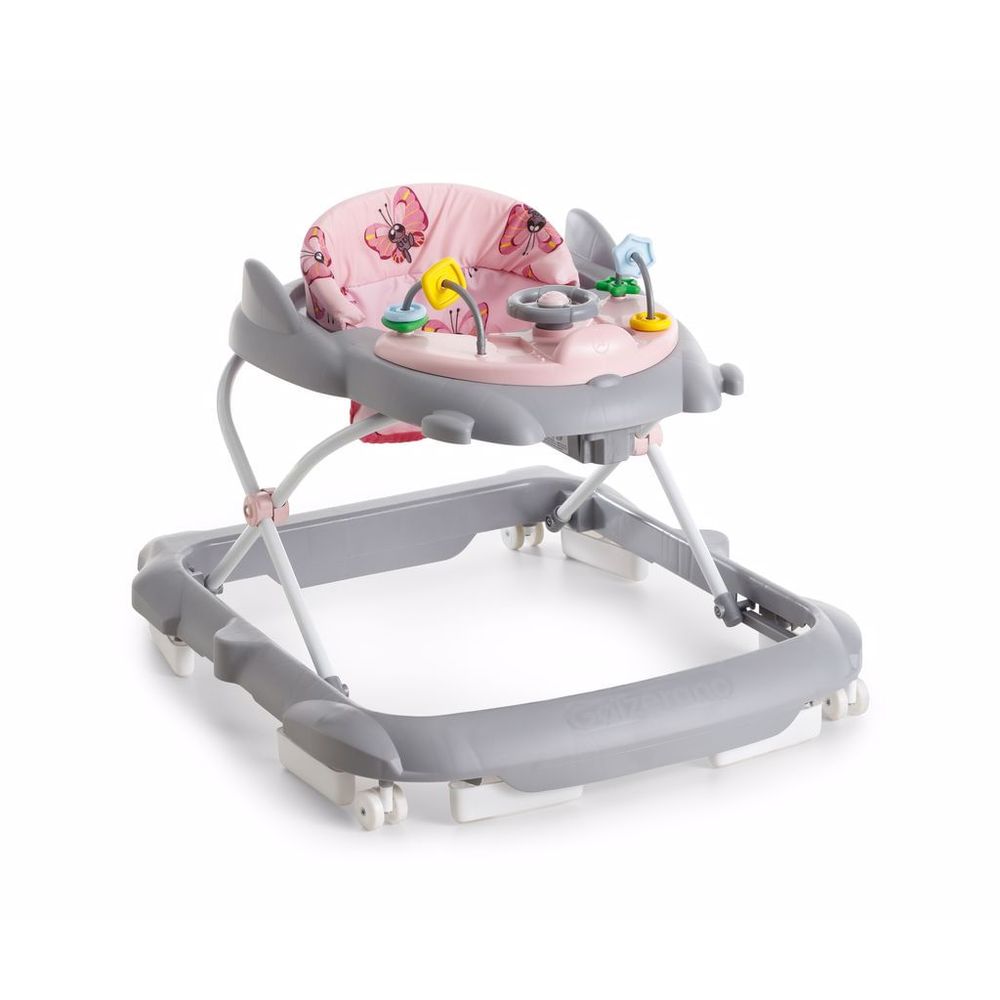 Para o divertimento da criança, o andador acompanha bandeja brinquedo. Sua composição têxtil é 100% poliéster.