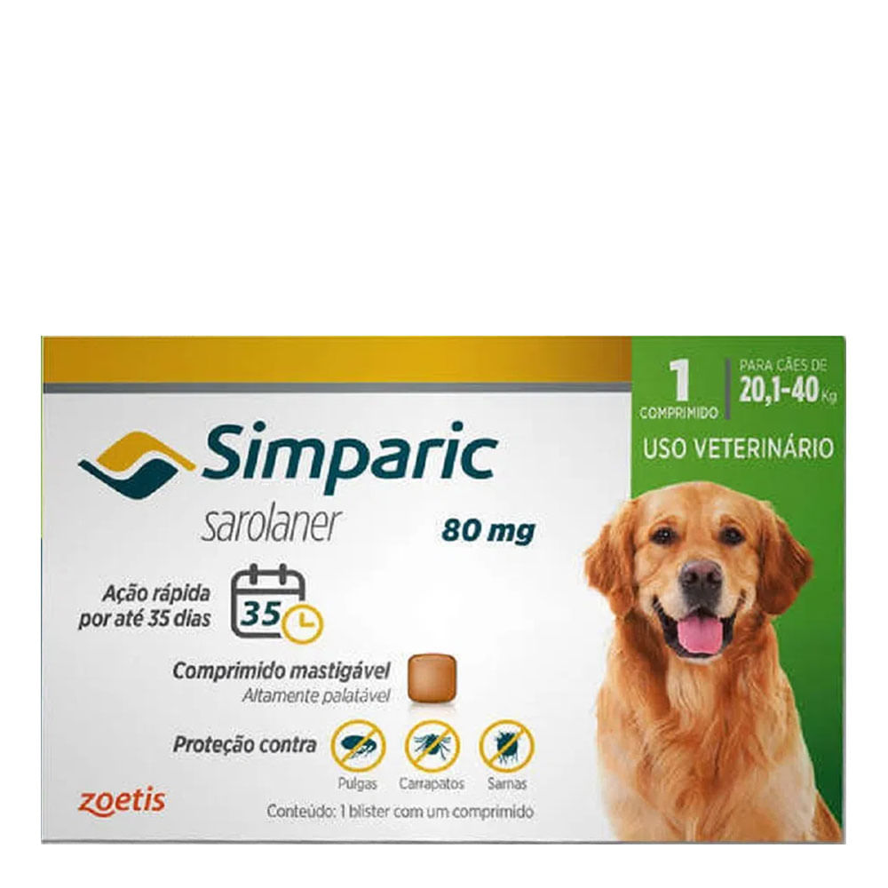 Antipulga Simparic para Cães de 20,1 a 40Kg - 80mg