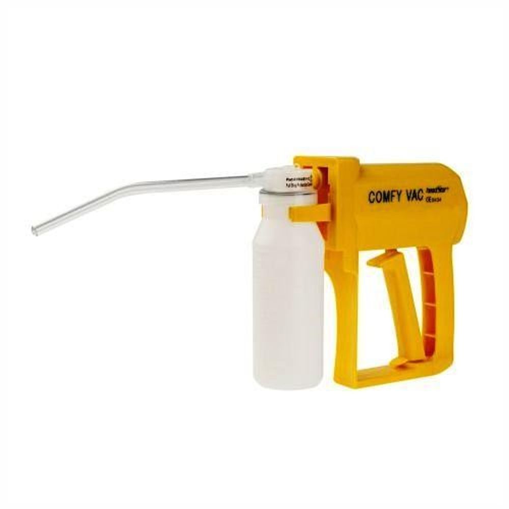 O Comfy VAC é um aspirador de secreções fácil de utilizar, portátil e compacto, possui um gatilho para bombeamento das secreções que atinge vácuo com pressão máxima de 550 mmHg.