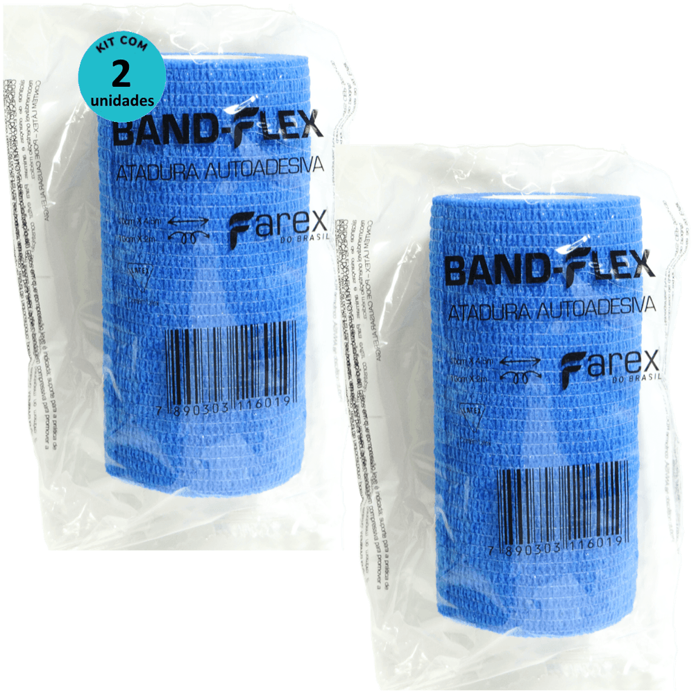 Atadura 10cm Azul Band-Flex Autoadesiva Para Animais Farex Kit Com 2