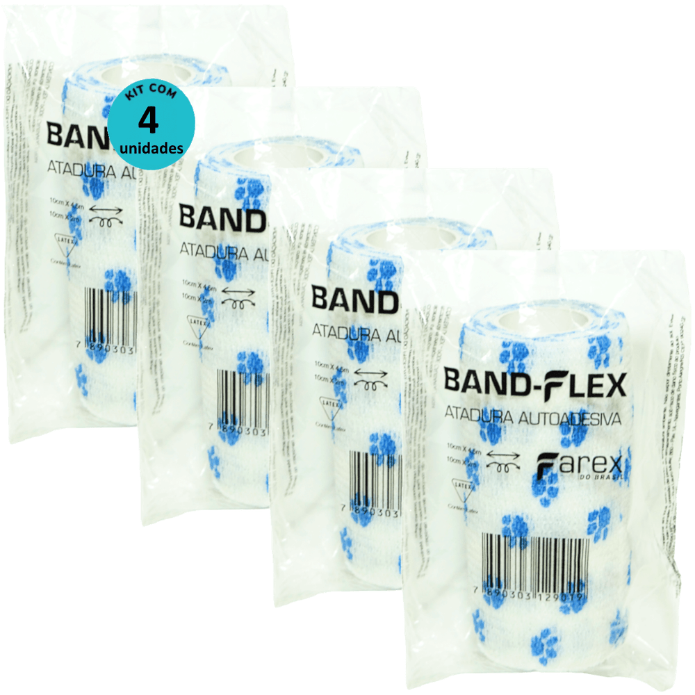 Atadura 10cm Branca Com Patinhas Band-Flex Autoadesiva Para Animais Farex Kit Com 4
