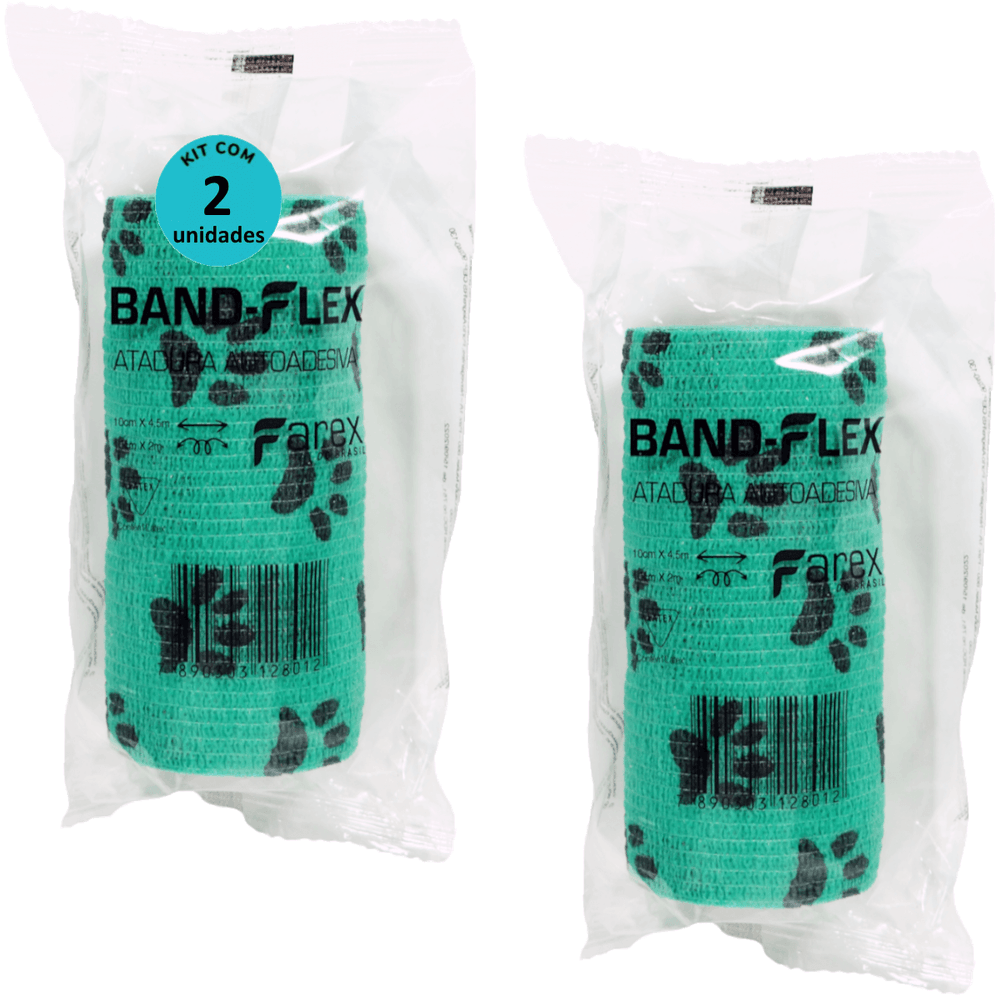Atadura 10cm Verde Com Patinhas Band-Flex Autoadesiva Para Animais Farex Kit Com 2