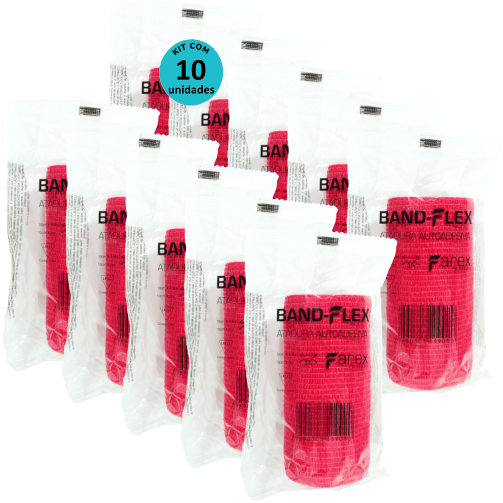 Atadura 10cm Vermelha Band-Flex Autoadesiva Para Animais Farex Kit Com 10