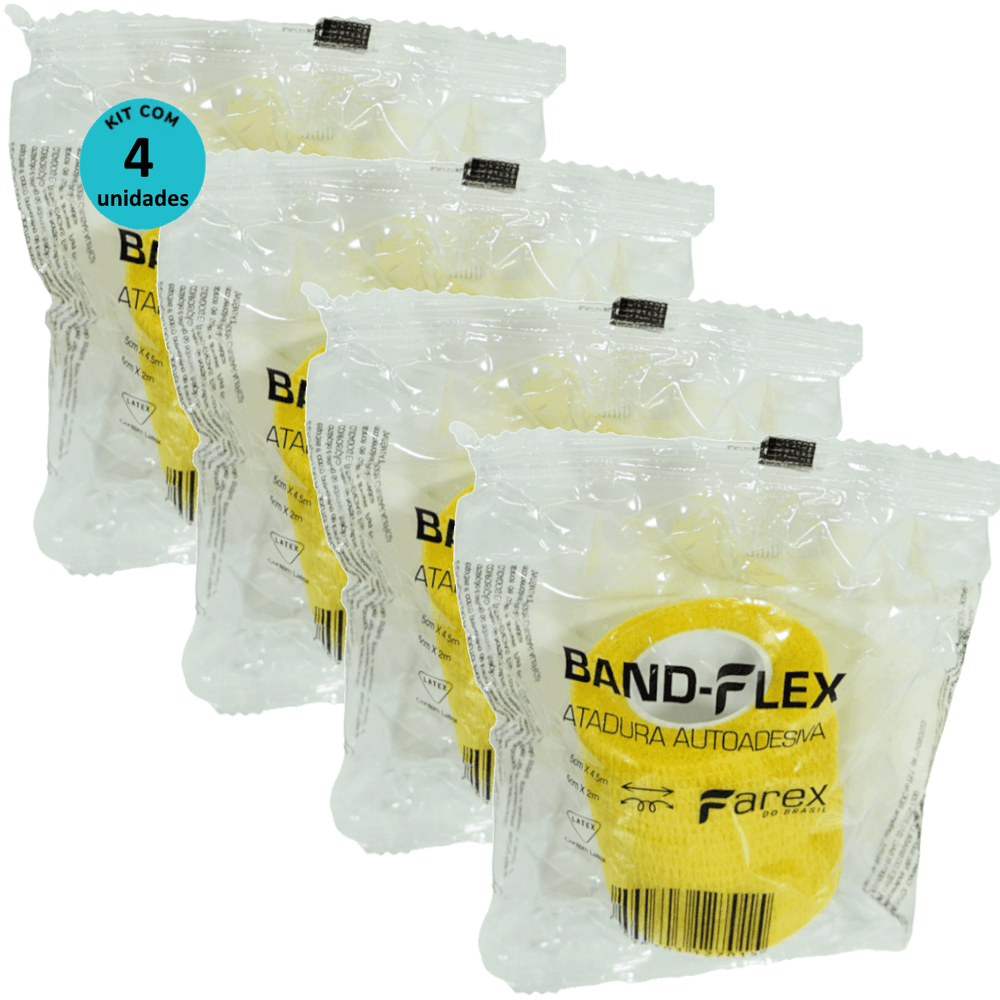 Atadura 5cm Amarela Band-Flex Autoadesiva Para Animais Farex Kit Com 4