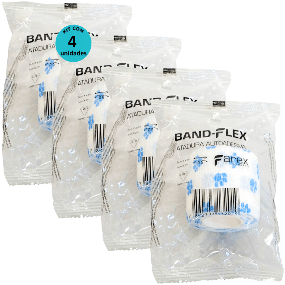 Atadura 5cm Branca Com Patinhas Band-Flex Autoadesiva Para Animais Farex Kit Com 4
