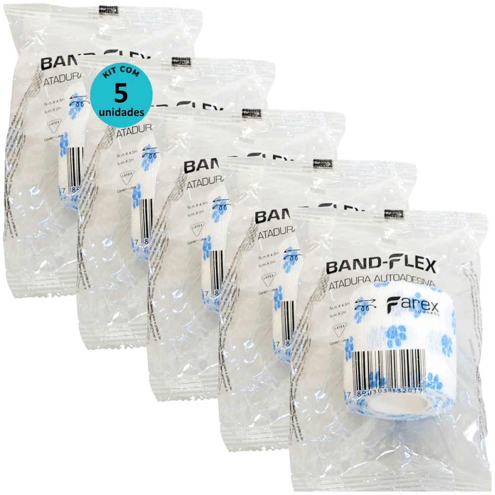 Atadura 5cm Branca Com Patinhas Band-Flex Autoadesiva Para Animais Farex Kit Com 5