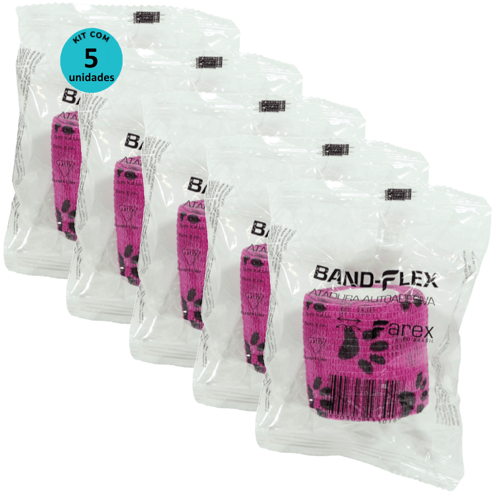 Atadura 5cm Rosa Com Patinhas Band-Flex Autoadesiva Para Animais Farex Kit Com 5