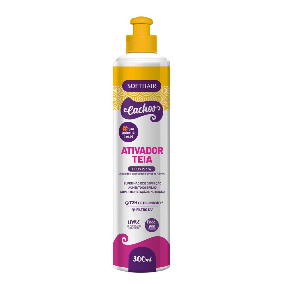 Ativador Teia Soft Hair – Brilho, Maciez e Definição por até 72h!Descubra o poder do Ativador Teia Soft Hair, o segredo para cachos definidos, hidratados e com brilho intenso por muito mais tempo!Com efeito teia inovador, esse ativador facilita a aplicação, distribui o produto de forma uniforme e aumenta a memória dos fios, garantindo definição prolongada e controle total do frizz.Fórmula rica em vitaminas e propriedades mucilaginosas que proporcionam hidratação profunda, nutrição intensa e maciez extrema, sem pesar nos fios.PH 4,0 | Compatível com Low Poo e No PooIndicado para cabelos ondulados, cacheados e cresposBenefícios do Ativador Teia Soft Hair:Define os cachos por até 72 horasGarante brilho e maciez intensosControla o frizz e reduz o volume indesejadoHidrata e nutre profundamenteFacilita o desembaraço e a finalizaçãoMantém os fios disciplinados e com movimento naturalTransforme o Day After dos seus cachos com o Ativador Teia Soft Hair — o melhor aliado para quem busca definição, brilho e controle do frizz todos os dias!ANVISA PROCESSO: 25351.002227/2021-73 AFE 2.01236.1Modo de uso: Com os cabelos limpos e úmidos, aplique o produto mecha a mecha uniformemente do comprimento às pontas, realize a fitagem ou a técnica de finalização que desejar, em seguida, amasse-os com movimento invertido das pontas até a raiz. *Para melhor resultado do efeito de definição por 72h, após a aplicação não retire o excesso do produto.Dica: Amasse e solte os fios por alguns segundos mecha a mecha, isso irá ajudar na definição dos cabelos.-------------------------------------------------------------------------------Principais Tags de pesquisa:ativador de cachos, ativador teia soft hair, ativador efeito teia, melhor ativador de cachos, ativador para cabelos crespos, creme ativador de cachos, creme para definir cachos, creme modelador de cachos, melhores ativadores de cachos, ativador para cabelos ondulados, ativador de cachos efeito teia
