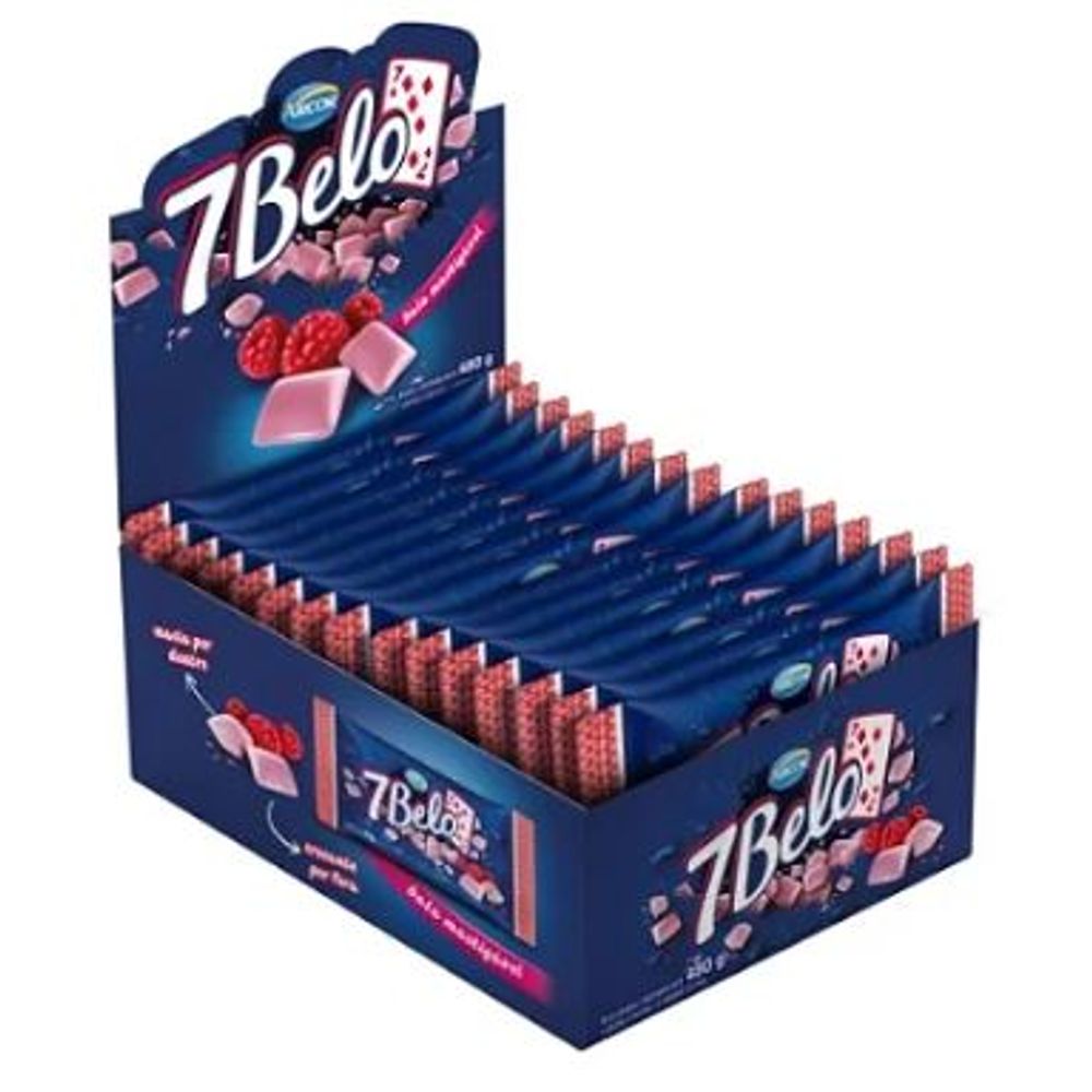 Bala 7 belo mastigável drageada sabor framboesa caixa com 12 unidades de 40g - Arcor