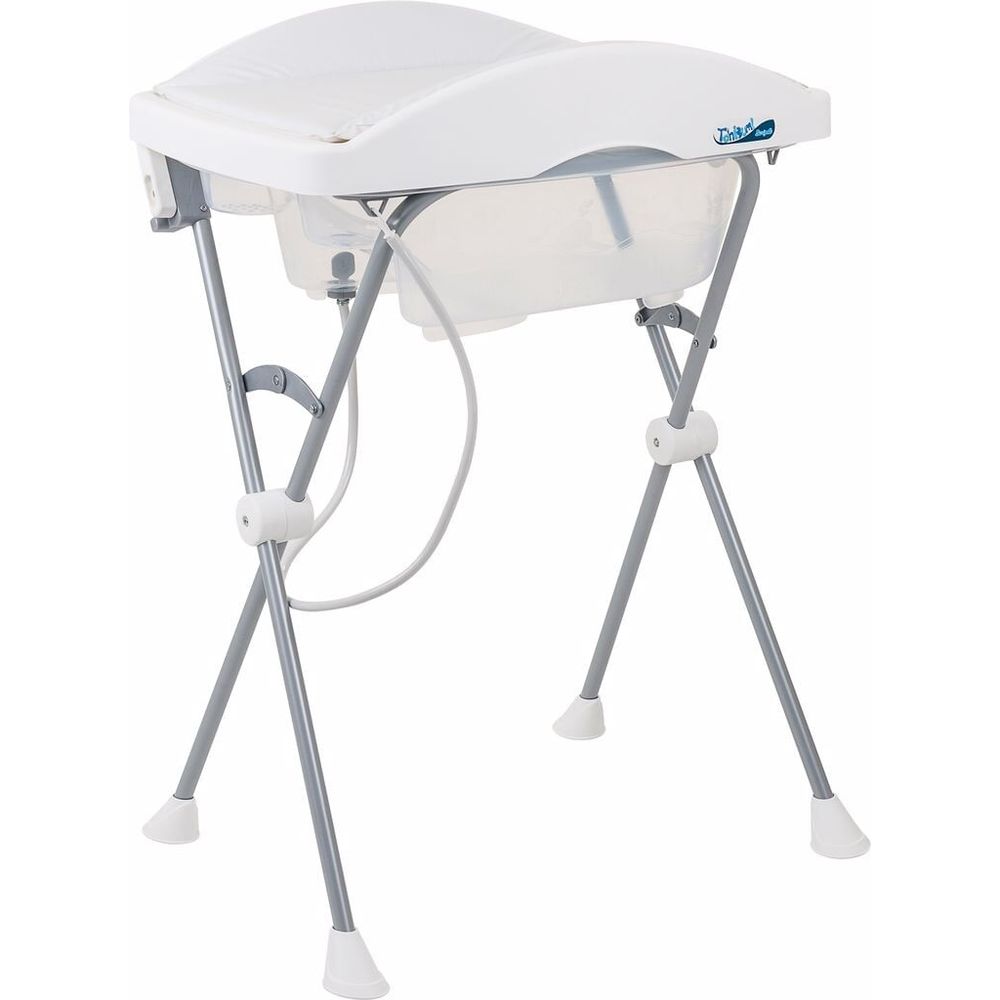 CARACTERÍSTICAS: • Indicação: até 10 kg • Saboneteira incorporada • Design ergonômico e compacto para a utilização em espaços reduzidos • Mangueira para escoamento da água • Tampo plástico com trocador acolchoado • Indicador de nível máximo de água • Plug projetado para rápido escoamento de água • Com rodas para transportar • Gancho para guardar