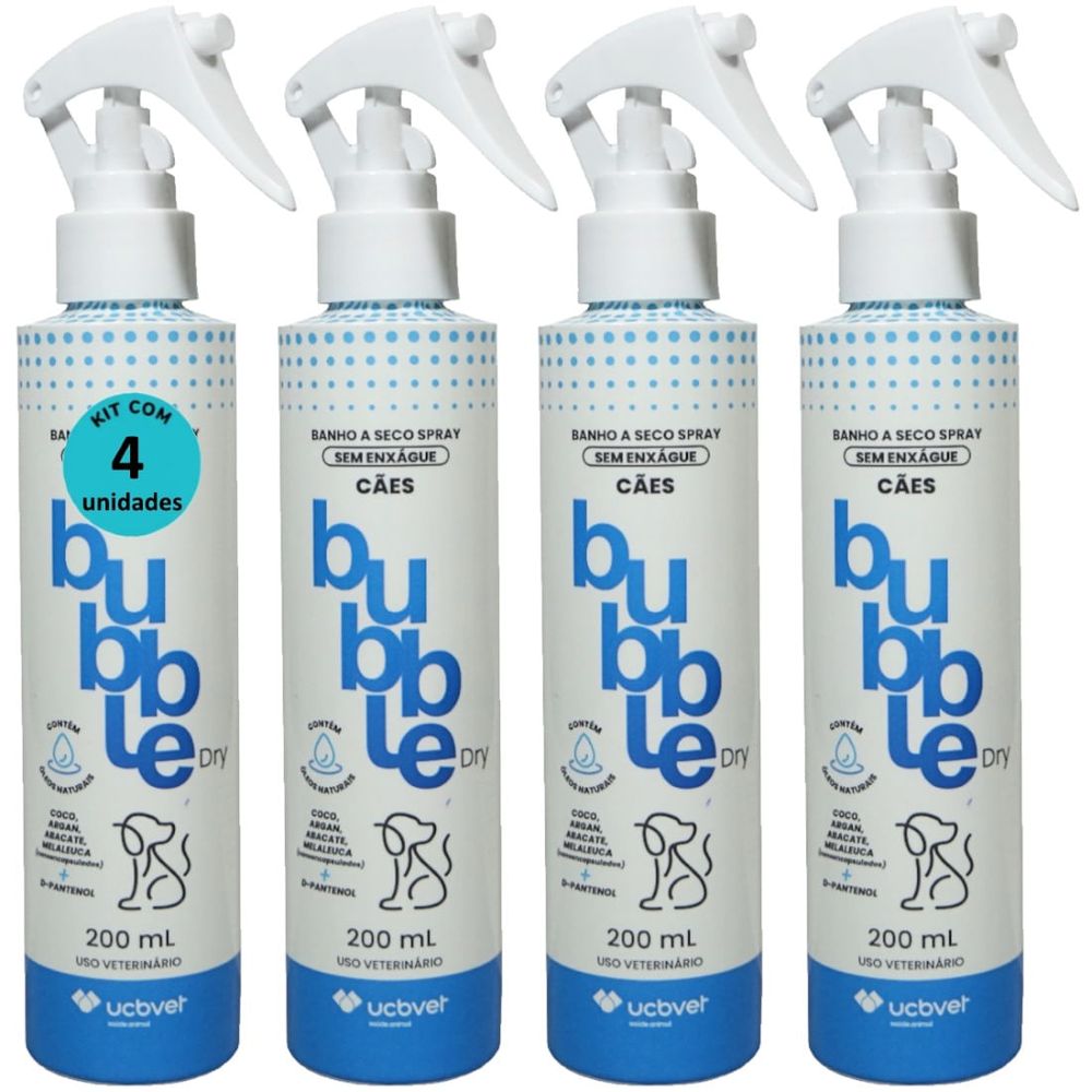 BANHO A SECO BUBBLE DRY SPRAY 200ML PARA CÃES KIT COM 4
