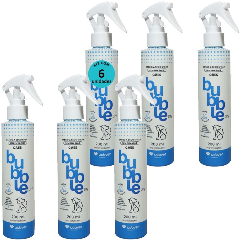 BANHO A SECO BUBBLE DRY SPRAY 200ML PARA CÃES KIT COM 6