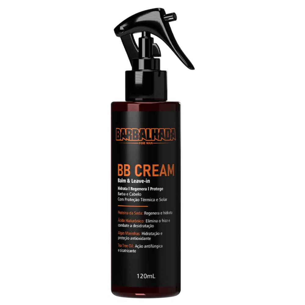 BB Cream Barbalhada - Balm e Leave-in para Barba e Cabelo - 120?mL   Praticidade e cuidado em um só produto. O BB Cream Barbalhada é um balm multifuncional que atua como leave-in para barba e cabelo, garantindo hidratação intensa, regeneração dos fios e proteção contra agressões diárias. Sua fórmula leve e não oleosa disciplina os fios rebeldes, reduz frizz, previne pontas duplas e deixa barba e cabelo com aspecto saudável, macio e alinhado o dia todo. Ideal para homens que buscam uma rotina prática, com mais cuidado e estilo em cada aplicação.