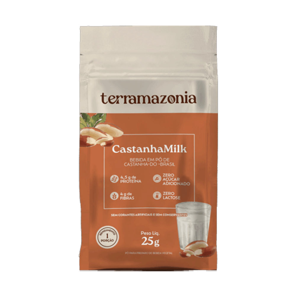 A Bebida Vegetal de Castanha do Pará em Pó Castanha Milk Sachê Terramazônia é uma opção deliciosa, nutritiva e saudável para quem busca uma alternativa ao leite de origem animal!_x005F_x000D_  _x005F_x000D_ A Bebida Vegetal de Castanha do Pará em Pó Castanha Milk Sachê Terramazônia é rica em nutrientes como proteínas, fibras e gorduras saudáveis. Pode ser usado com café, achocolatado, na vitamina, receitas doces e salgadas. É para ser usado exatamente como um leite em pó._x005F_x000D_  _x005F_x000D_ Ingredientes: Proteína concentrada de castanha-do-brasil, polidextrose (fibra alimentar), lecitina, minerais [cálcio (carbonato de cálcio), magnésio (carbonato de magnésio) e ferro (pirofasfato férrico)], vitaminas [vitamina C (l-áscorbato de sódio), vitamina B3 (nicotinamida), vitamina B5 (D-pantotenato), vitamina B1 (mononitrato de tiamina), vitamina B6 (cloridato de piridoxina), vitamina A (acetato de retinila), vitamina B7 (D-biotina), vitamina D (colecalciferol), e vitamina B12 (cianocobalamina)], aroma ID natural de leite, goma xantana, goma guar. NÃO CONTÉM GLUTEN._x005F_x000D_ ALÉRGICOS: CONTÉM DERIVADOS DE CASTANHA DO PARÁ._x005F_x000D_  _x005F_x000D_ Sobre a marca: A Terramazonia nasceu da inspiração de cientistas e conhecedores da Amazônia com o propósito de promover a conexão entre a necessidade latente de saúde e bem-estar por meio de uma alimentação natural e saudável, a preservação da Amazônia e a sustentabilidade econômica das populações locais._x005F_x000D_  _x005F_x000D_ Sobre a Boomi: A Boomi é  um mercado online com produtos saudáveis e sustentáveis, que fazem bem à saúde e ao planeta. São mais de 3.500 produtos de 150 pequenas marcas para você!_x005F_x000D_ Nascemos pequenos, mas com um propósito gigante: conectar pessoas a produtos acessíveis que tragam benefícios para a saúde, para o planeta e para a sociedade. Para isso, buscamos ofertar produtos de pequenos agricultores e pequenas empresas em um mundo cada vez mais veloz e que busca mais produtividade. Vamos sempre buscar levar o melhor para você!_x005F_x000D_ Nosso propósito é conectar alimentos saudáveis e produtos naturais e sustentáveis a pessoas preocupadas com a sua saúde e com a saúde do planeta. Com preço justo, comodidade e informações confiáveis._x005F_x000D_ Curadoria: Nossos produtos são criteriosamente validados pela nossa curadoria de produtos saudáveis, que busca produtores e empresas que compartilham do nosso alto padrão de qualidade. Da enorme lista de ingredientes banidos à preocupação do bem estar animal, desde o primeiro dia seguimos fieis aos nossos valores, trabalhando com transparência e práticas sustentáveis. Vendemos apenas produtos que admiramos e que nos orgulha.