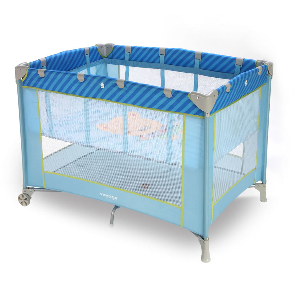 Colchonete macio e impermeável com 2 posições de altura. Leve, compacto e confortável para o bebê, com rodas para movimentação, laterais com tela e bolsa de transporte com alça excelente para viagens.