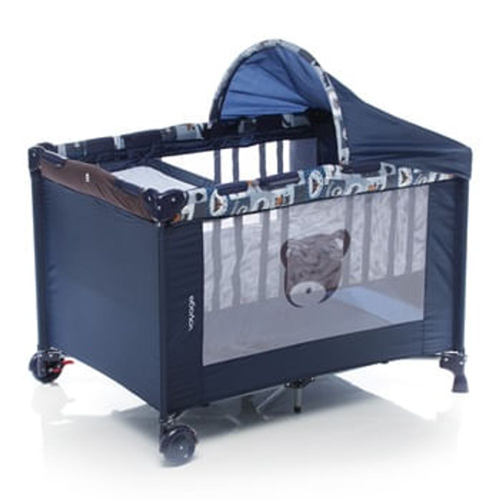Colchonete macio e impermeável com 2 posições de altura. Leve, compacto e confortável para o bebê, inclui rodas com freio, amplo bolso porta-objetos, laterais com tela e bolsa de transporte com alça excelente para viagens.
