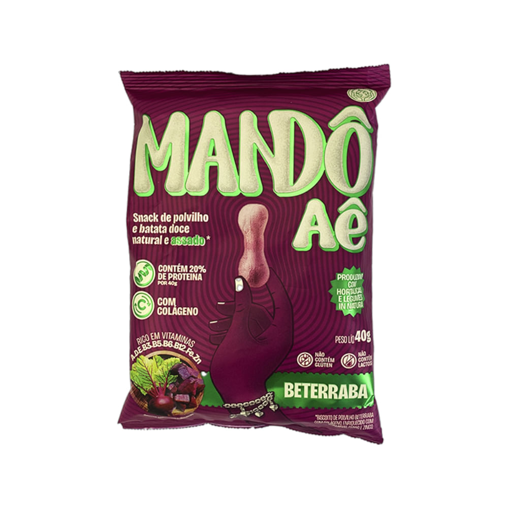 O Biscoito de Polvilho Beterraba Mandô Aê é um snack prático, saboroso e com ingrediente s naturais para quem valoriza um estilo de vida consciente. Saudável e autêntico, o Biscoito de Polvilho Beterraba Mandô Aê é feito com polvilho e batata-doce como base, enriquecido com colágeno e rico em vitaminas. Ingredientes: Polvilho azedo, batata doce in natura, colágeno hidrolisado, gordura de palma, beterraba in natura, salsa in natura, sal e mix de vitaminas (A, D, E, B3, B5, B6, B12) e minerais (zinco e ferro). NÃO CONTÉM GLÚTEN.  Sobre a marca:  Sobre a Boomi: A Boomi é  um mercado online com produtos saudáveis e sustentáveis, que fazem bem à saúde e ao planeta. São mais de 3.500 produtos de 150 pequenas marcas para você!Nascemos pequenos, mas com um propósito gigante: conectar pessoas a produtos acessíveis que tragam benefícios para a saúde, para o planeta e para a sociedade. Para isso, buscamos ofertar produtos de pequenos agricultores e pequenas empresas em um mundo cada vez mais veloz e que busca mais produtividade. Vamos sempre buscar levar o melhor para você!Nosso propósito é conectar alimentos saudáveis e produtos naturais e sustentáveis a pessoas preocupadas com a sua saúde e com a saúde do planeta. Com preço justo, comodidade e informações confiáveis.Curadoria: Nossos produtos são criteriosamente validados pela nossa curadoria de produtos saudáveis, que busca produtores e empresas que compartilham do nosso alto padrão de qualidade. Da enorme lista de ingredientes banidos à preocupação do bem estar animal, desde o primeiro dia seguimos fieis aos nossos valores, trabalhando com transparência e práticas sustentáveis. Vendemos apenas produtos que admiramos e que nos orgulha.