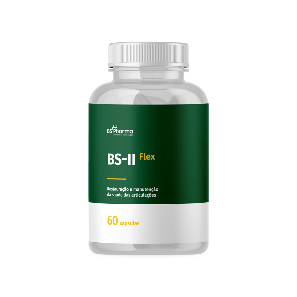 BS II Flex, especial para suas articulaçõesO BS II Flex é um suplemento a base de colágeno tipo II não hidrolisado, derivado da cartilagem de frango, que induz a restauração das articulações.Sua associação com MSM (Metilsulfonilmetano) e Ácido hialurônico potencializa os resultados, promovendo mais conforto, mobilidade e flexibilidade. É indicado para idosos, pessoas com sobrepeso, praticantes de atividade física e pessoas que sentem dor e precisam restaurar as funções das articulações.Articulações mais resistentes e saudáveisBS II Flex aumenta a densidade óssea e dá mais resistência para as articulações, proporcionando movimentos mais firmes e sem dor. BS II Flex aumenta a força e a tração, dando mais conforto e segurança para o desempenho das atividades do dia a dia e para praticar atividades físicas também.Cuidado das inflamações e alívio da dorO BS II Flex é indicado para prevenção e alívio das inflamações articulares (artrite) e dos quadros de artrose. Com o controle da inflamação, a dor diminui e é possível restabelecer o tecido articular.As ocorrências de lesões também diminuem, pois as articulações ficam mais fortes, com maior estabilidade e suportam melhor os impactos. Por isso, BS II Flex é muito indicado para praticantes de atividade física.Por que usar BS II Flex? - Fortalece as articulações; - Melhora a mobilidade e a flexibilidade; - Alivia as dores articulares; - Ajuda a controlar a inflamação local; - Previne lesões.Apresentação: 60 cápsulas gelatinosas incolores;Composição: Colágeno tipo II 40 mg; Msm 500 mg; Ácido hialurônico 50 mg; Excipiente qsp 1 cápsula gelatinosa incolor. NÃO CONTÉM GLÚTEN.;Imagem: LIBERTE SEUS MOVIMENTOS O BS II Flex é um poderoso suplemento para manter suas articulações saudáveis e resistentes. Mais força e resistência, menos dor e inflamação. Cuide-se ;Recomendações de uso: Tomar 1 cápsula após café da manhã.;Validade: 06 meses após data de manipulação.;Armazenamento: Armazenar em local fresco e arejado, protegido de luz, calor e umidade e manter embalagem sempre fechada.;Embalagem: Frasco com 60 cápsulas e lacre de proteção.;Requisitos de Segurança: Gestantes, lactantes e portadores de qualquer enfermidade, somente devem utilizar este produto sob orientação médica. Imagens meramente ilustrativas.;
