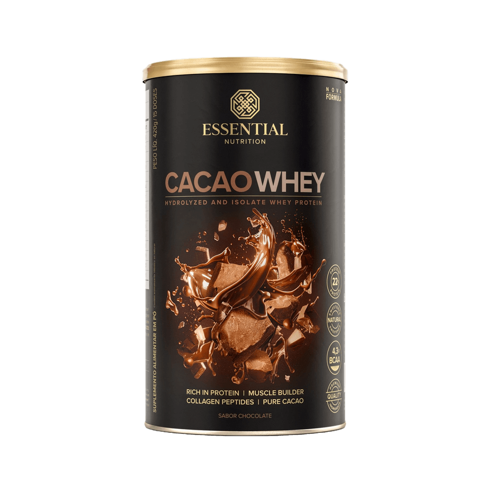 Cacao Whey é um delicioso blend de Whey Protein Hidrolisado e Isolado, Cacau Gourmet e Peptídeos de Colágeno hidrolisado, que agregam valor à fórmula e complementam a ação das proteínas. Adoçado com Estévia e Taumatina, adoçantes 100% naturais._x000D_ _x000D_ Cada dose de Cacao Whey fornece 44% das necessidades diárias de proteína recomendadas para um adulto. Essas proteínas são obtidas através do CFM (Cross-flow microfiltration), um processo de extração limpo e purificado, que não utiliza produtos químicos para isolar a proteína de componentes indesejáveis como a caseína, gordura, carboidratos e lactose._x000D_ _x000D_ Ingredientes: Proteínas hidrolisada e isolada do soro de leite (Thermax®690 e Provon®292), cacau em pó, colágeno hidrolisado em peptídeos (Peptan®), aromas natural e idêntico ao natural, edulcorantes taumatina e glicosídeos de esteviol (estévia). NÃO CONTÉM GLÚTEN._x000D_ ALÉRGICOS: CONTÉM DERIVADOS DE LEITE E SOJA._x000D_ _x000D_ Sobre a marca: A Essential Nutrition é especializada no desenvolvimento de suplementos alimentares, funcionais e nutrição. Cada produto nosso é muito mais que um produto: é um desejo de algo grandioso para a sua vida. É um manifesto pelo desenvolvimento pessoal com mais qualidade de vida. É por isso que todos os ingredientes que estão, e também os que não estão em nossas fórmulas foram pensados, estudados e fazem parte dos nossos princípios de nutrição. Esse mesmo propósito é compartilhado com médicos e nutricionistas, além de esportistas e pessoas que buscam uma alimentação equilibrada, associada a um melhor estilo de vida. Essas pessoas nos motivam diariamente a continuar desenvolvendo produtos de alta qualidade e inspirando cada vez mais pessoas a viverem melhor._x000D_ _x000D_ Sobre a Boomi: A Boomi é um mercado online com produtos saudáveis e sustentáveis, que fazem bem à saúde e ao planeta. São mais de 1.800 produtos de 100 pequenas marcas para você!_x000D_ Nascemos pequenos, mas com um propósito gigante: conectar pessoas a produtos acessíveis que tragam benefícios para a saúde, para o planeta e para a sociedade. Para isso, buscamos ofertar produtos de pequenos agricultores e pequenas empresas em um mundo cada vez mais veloz e que busca mais produtividade. Vamos sempre buscar levar o melhor para você!_x000D_ Nosso propósito é conectar alimentos saudáveis e produtos naturais e sustentáveis a pessoas preocupadas com a sua saúde e com a saúde do planeta. Com preço justo, comodidade e informações confiáveis._x000D_ Curadoria: Nossos produtos são criteriosamente validados pela nossa curadoria de produtos saudáveis, que busca produtores e empresas que compartilham do nosso alto padrão de qualidade. Da enorme lista de ingredientes banidos à preocupação do bem estar animal, desde o primeiro dia seguimos fieis aos nossos valores, trabalhando com transparência e práticas sustentáveis. Vendemos apenas produtos que admiramos e que nos orgulha.