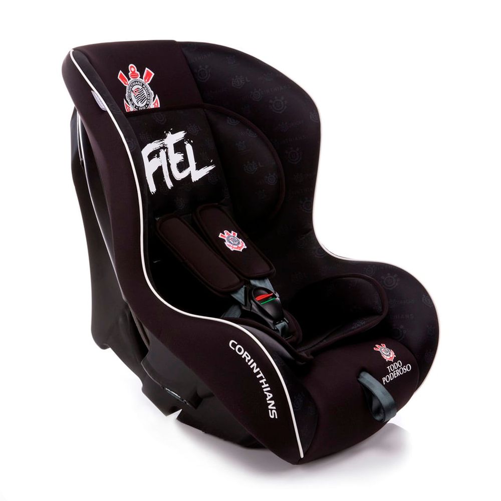 Cadeirinha oficial do Timão com assento regulável para os bebês, segurança aprimorada até 25kg e acessórios dupla face.