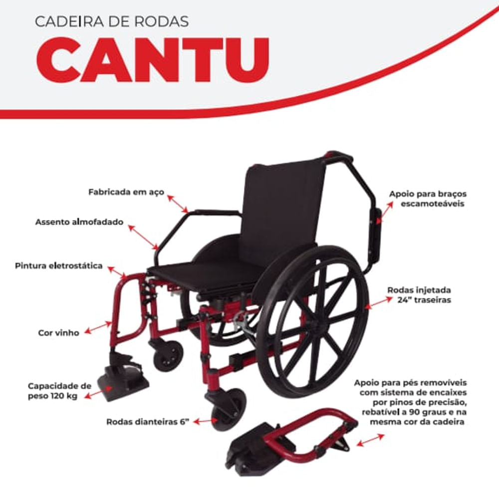 Cadeira de Rodas Jaguaribe Cantu SL Vinho 44cm
