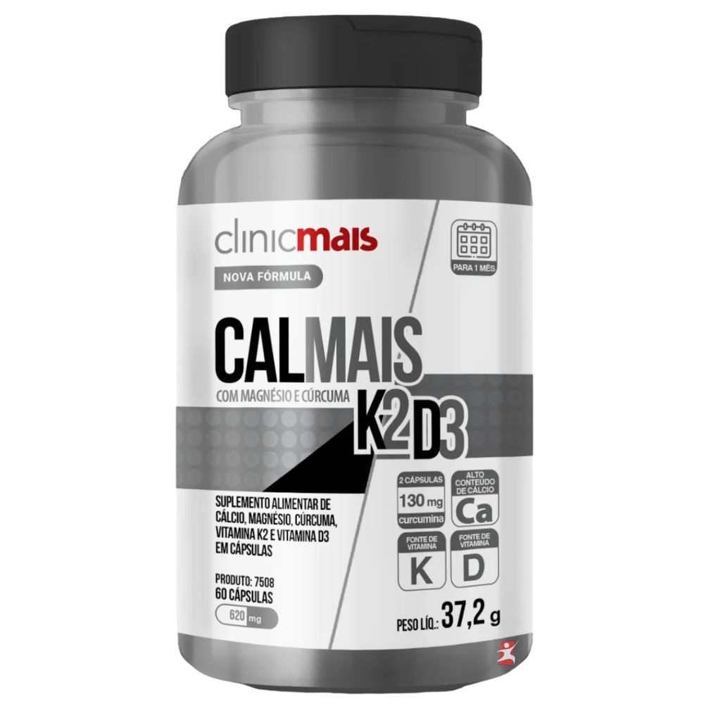 CALMAIS CÁLCIO + MAGNÉSIO + K2 + D3 + CURCUMA 60 CAPSULAS - CLINICMAIS