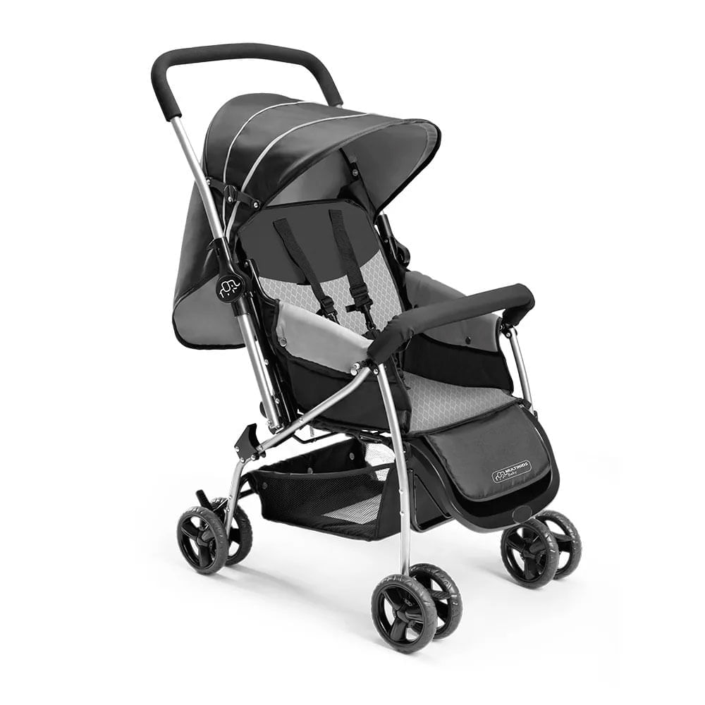 Vem com suporte embaixo para que os pais carreguem suas coisas.
