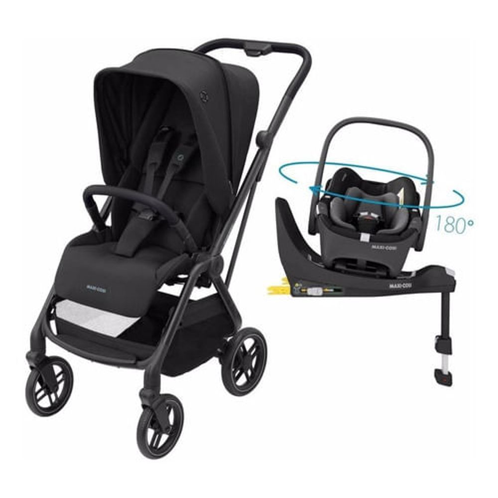 Carrinho com Bebê Conforto Travel System Leona² Trio com giro 360° e Isofix Maxi-Cosi Essential Blac