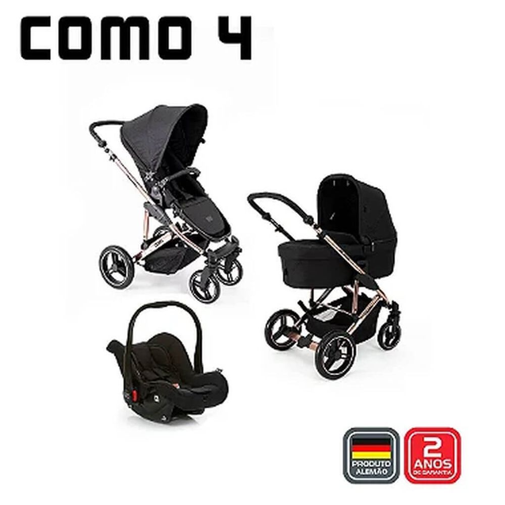 Devido a versatilidade da estrutura do Como 4, tanto o Moises quanto o Bebê Conforto, cadeirinha do carro, podem ser acoplados diretamente na estrutura do produto permitindo assim a utilização desde recém-nascido. O Moises inclui colchonete antirrefluxo e antissufocante, 100% acolchoado e estruturado internamente (podendo ser utilizado mesmo quando o carrinho não estiver montado) e conta com o acessório Cobre Pernas que protege o bebê de vento, chuva e sol. Com tecido tecnológico resistente a água e com fator de proteção solar 50+ (que protege a pele sensível do bebê dos raios UVA e UVB) a capota do Como 4 pode ser estendida para maior alcance de sombra no carrinho.