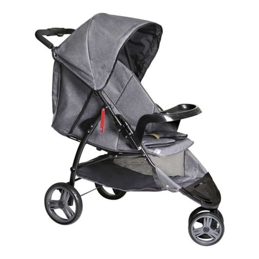 Seu encosto é regulável em 4 posições, com eixos dianteiro e traseiros removíveis, rodas dianteiras giratórias e 2 rodas traseiras com único sistema de freio. Ele acompanha bandeja com porta copos, removível e fácil encaixe, cinto de segurança 5 pontos, protetor de ombro e capota removível e retrátil.