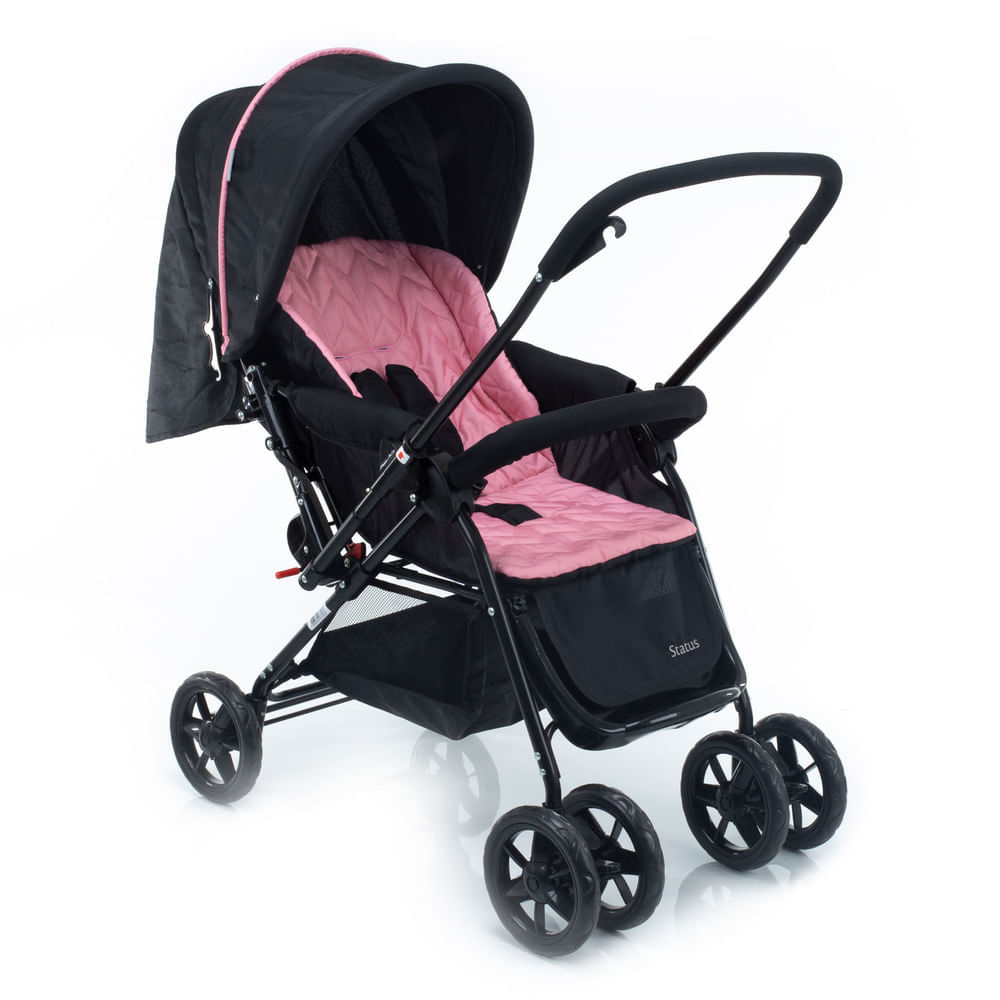 Carrinho de Bebê Reversível Status Voyage Rosa e Preto