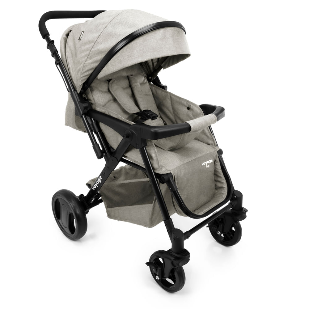 Com alça reversível, possibilita um ajuste rápido para o bebê; ficar de frente para os pais ou para o mundo. A capota estendida tem teto solar e quebra- sol. O Trip tem ainda assento reclinável com função berço, apoio ajustável para os pés, freio nas 4 rodas e amplo cesto de compras.